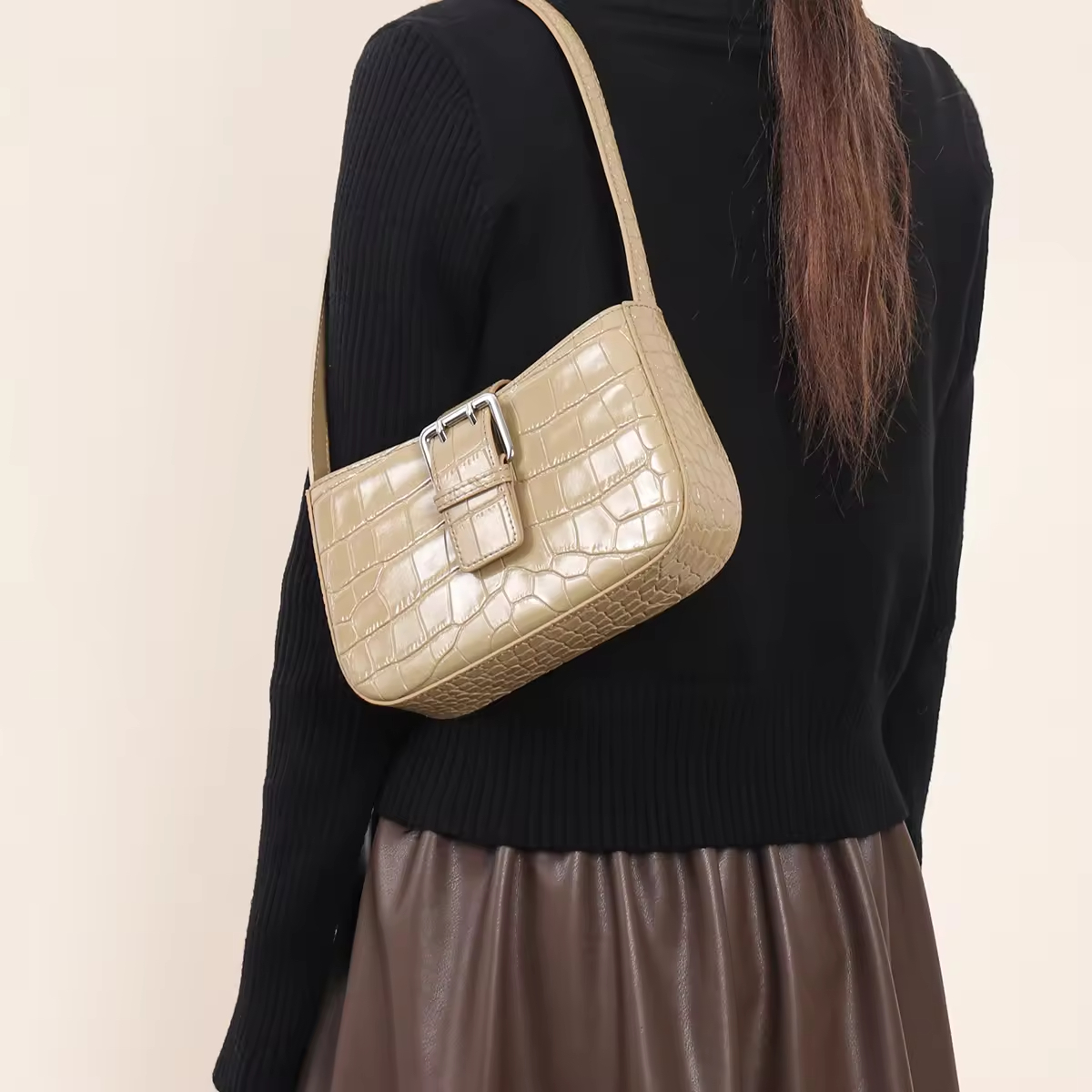 • Wholesale Luxury Fashionable Genuin Leather Crocodile Embossed Print Pattern Lady Ladies Shoulder Underarm Bags